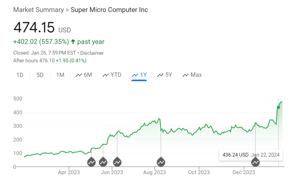 从2023年5月AI Boom席卷华尔街以来,SMCI的股价已经取得了550%的惊人回报,而这一切都得益于GPU服务器的超预期增长。如下图: