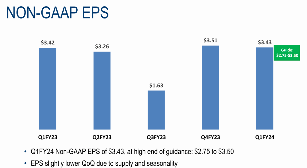 值得警惕的是,实际上在上一次财报中,对本次财报2024Q2给出的指引相当的差:营收为19-22亿,EPS仅仅$2.75-$3.50,中位数不及Q1的$3.41,实际上会出现连续三个季度下滑。