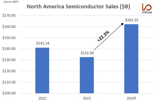 - 与我们之前从台湾TSM库存周期得到的预测相同,美国半导体2024财年的出货量将走出衰退区间,预期整体将上涨22.3%