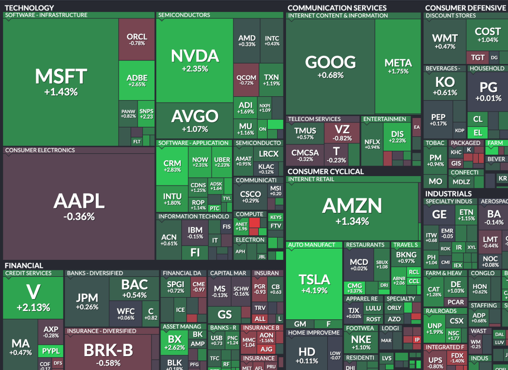 - 对利率敏感的房地产板块也大涨,其中Opendoor大涨11%,Redfin大涨7.4%