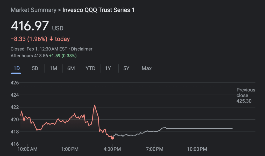 今天下午1点FOMC会议纪要中发布的结论,首先是美联储并不急于降息,需要等待通胀“更可信地”(has gained greater confidence)降低到2%之后才会开始考虑降息。在该会议纪要发布出来的那一秒钟,市场转空。以QQQ为例,跳水幅度不算太大,约0.5%。这里我不得不佩服各大机构电脑交易的速度和自然语言理解的水平,看来chatGPT一定做了一点微小的贡献。