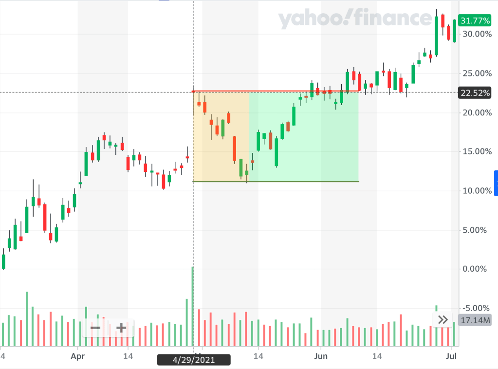 - 2021年4月29日那次,2周之内股价便从下方Fill the Gap,将财报涨幅完全吐回,随后再继续上涨