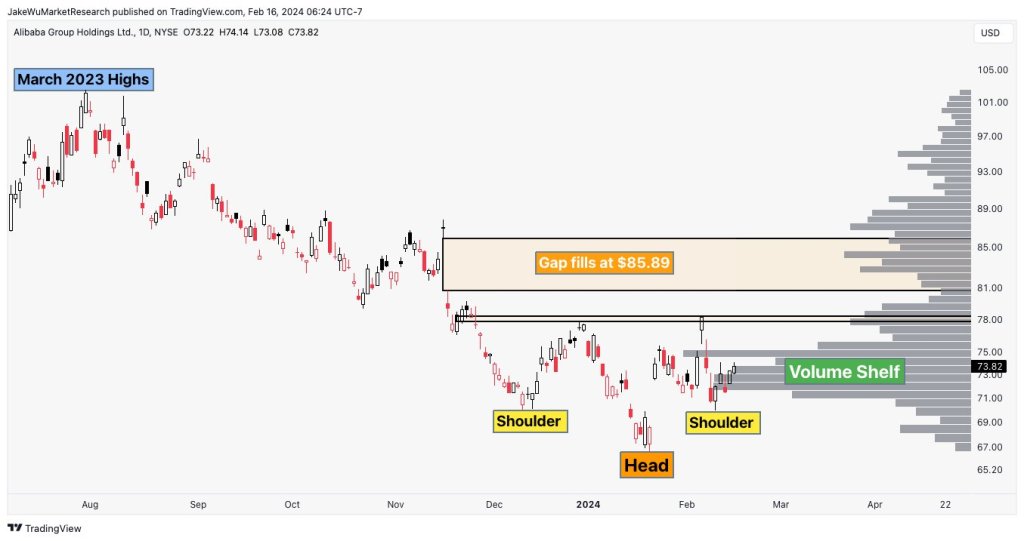 从技术上看,确实有筑底反弹的趋势。下图为BABA的K线,分析显示,BABA向上有望看涨到$85左右: