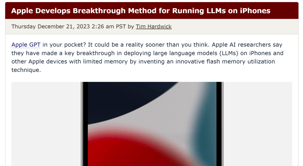 已经有人测试,得益于庞大的统一内存(Unified Memory)——还记得我们之前提到的,大显存有利于推理大模型吗?通过一些量化技巧,苹果的M系列芯片已经可以在本地运行较有竞争力的LLAMA2或Mistral 7b模型了。我们相信,苹果硬件团队为加速GPT推理而在自家M和A系列芯片中加入一块全新的transformer-NPU,将不是什么难题。考虑到苹果在芯片设计上的技术实力,为了LLM做一个ASIC,也不是完全不可能。