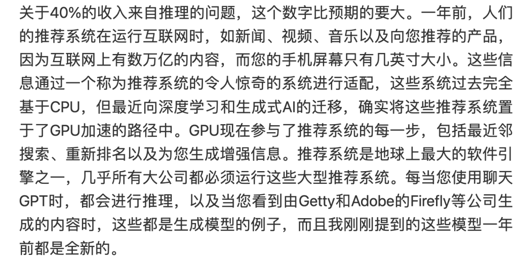 - “我们推理业务占NVDA收入的40%”也佐证了这一论断