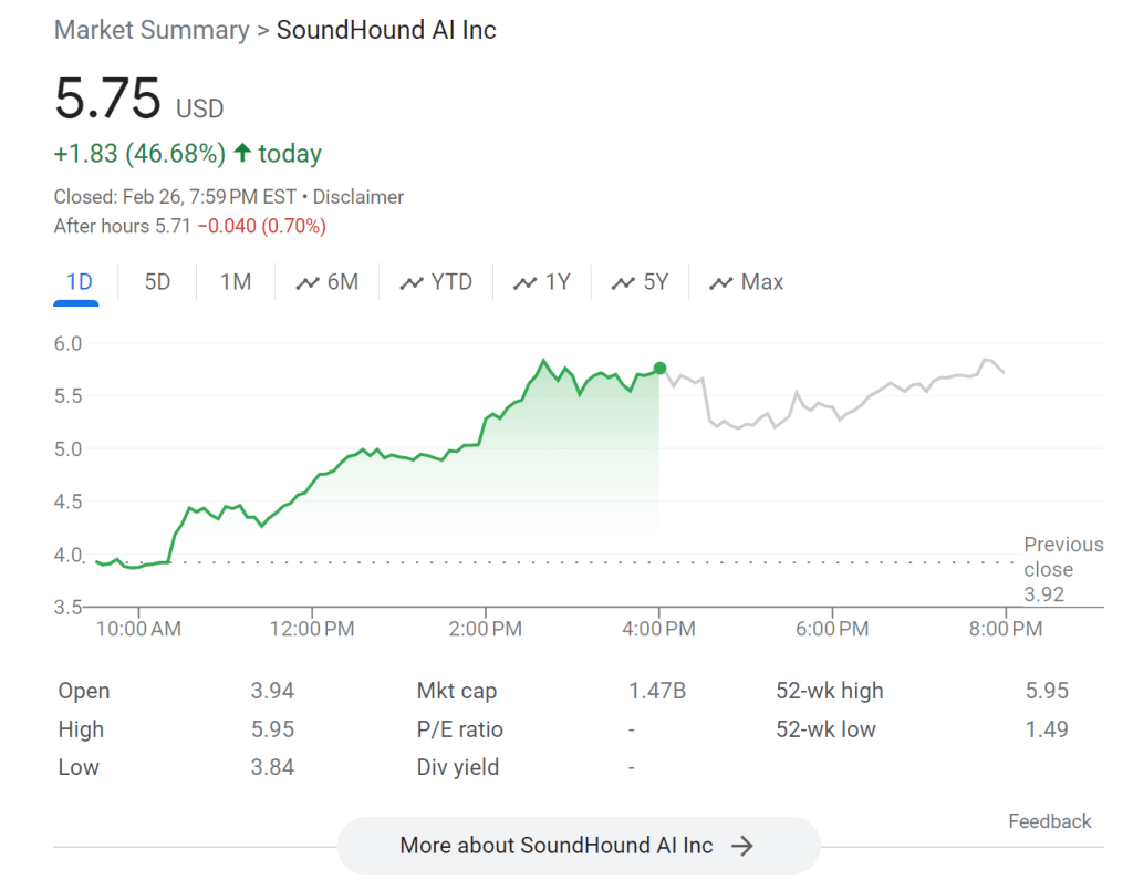 今天日内,AI炒作资金似乎从SMCI离去,转而涌向了ARM和英伟达投资的SOUN。从谷歌逃逸出去的资金对这些股票的暴涨可能也有贡献。