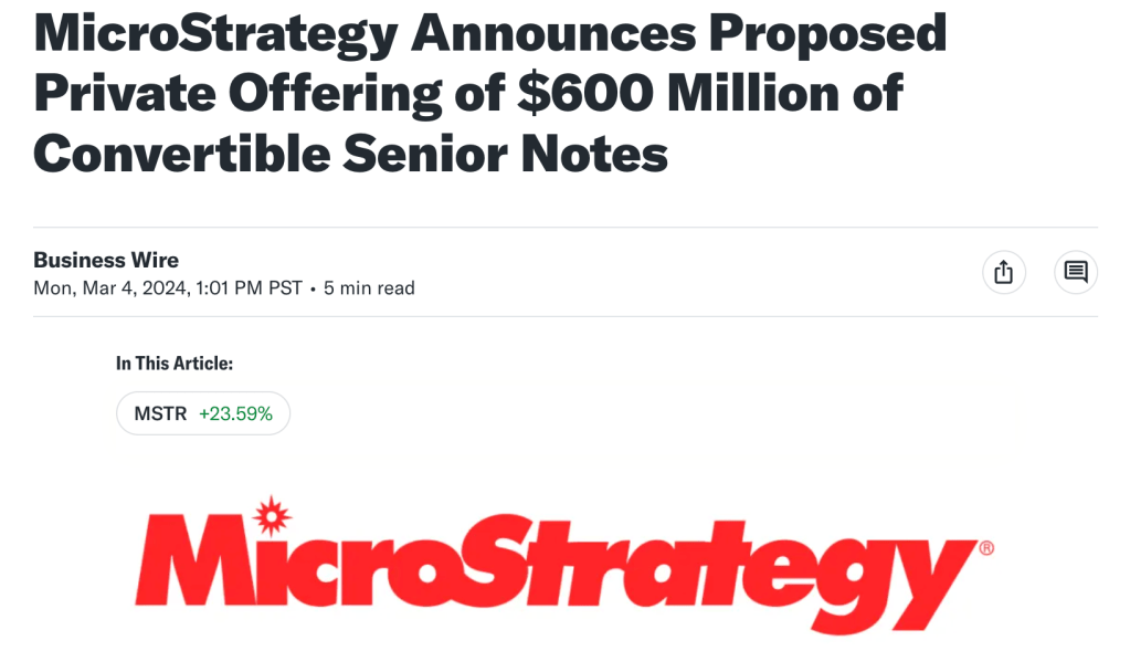 - MSTR盘后宣布增发6亿美元可转债,说是用来购买更多的比特币。这种增发行为导致盘后一度下跌3%