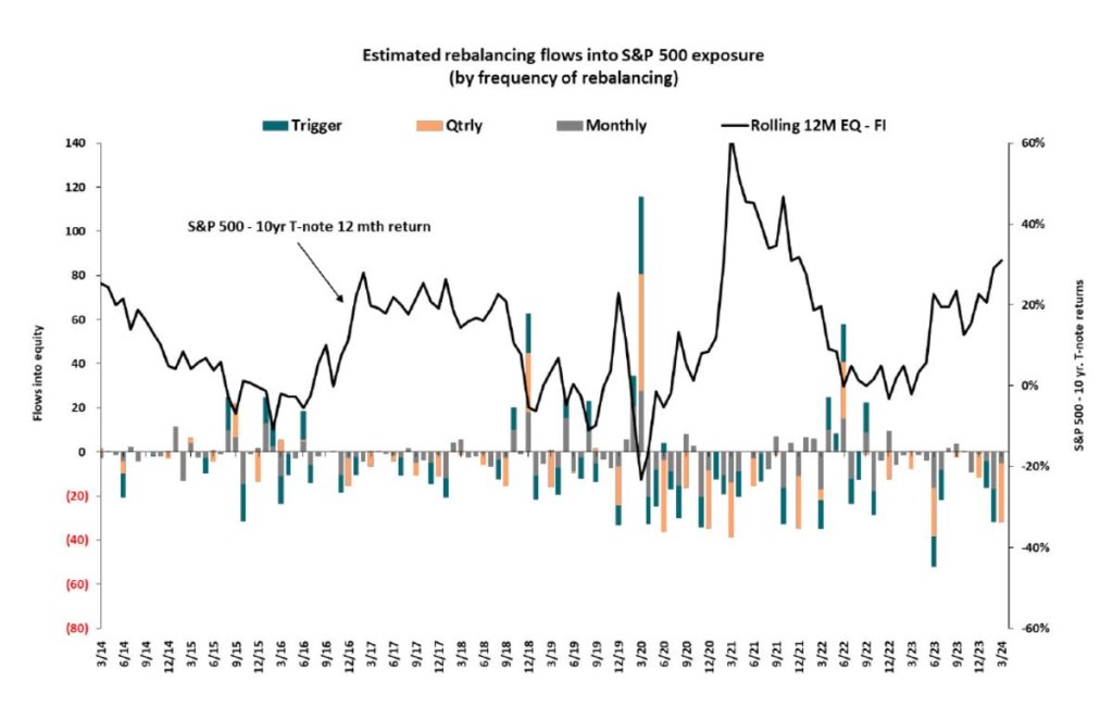 如上图所示,向右数最后一根柱子中的黄色部分,就是机构的季度(Quarterly)调仓额度。基本上有30%的比例净流出。