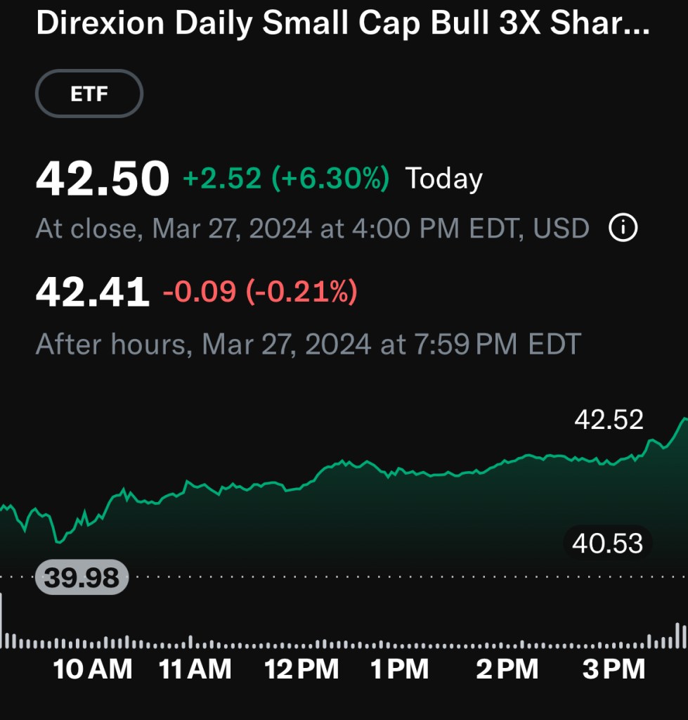 如果调仓的动能能够延续,最近短线操作一下TNA和TMF或许也能得到一些利润。但我并不想做这些太短线没有长期支撑的操作:除了TNA可能会在长期受益于 Rebalanacing(主要逻辑可能还是补涨)在第二季度有一些涨幅之外,TLT的波动太大,我就不再操作了。此外,我们在昨天的日报中分析了为何看好HOOD,我本人在今天也加仓了。关于这方面的细节,我们留给明天再说。