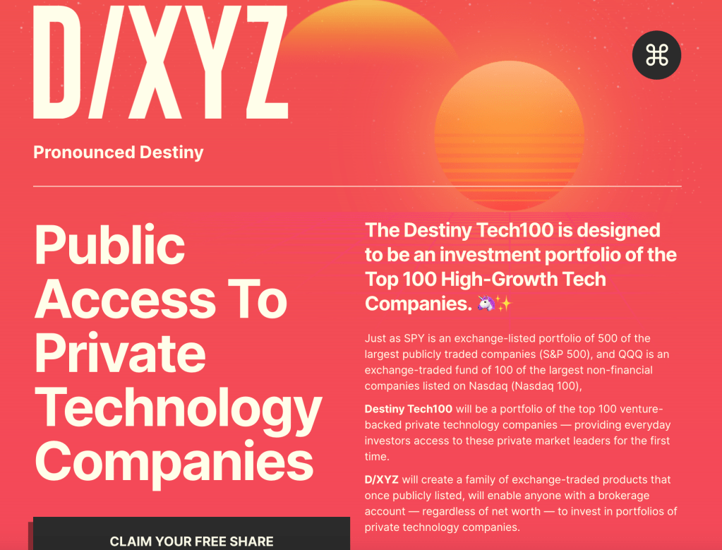 DXYZ到底是个什么东西?它全名为“Destiny Tech100”,是一家号称持有100家头部pre-IPO科技公司的ETF,其中包括被市场热捧的各行业独角兽。但他并不是一个典型的ETF,更像是一个私募基金把自己在一级市场中Portfolio证券化后,拿出来在市场上买卖。