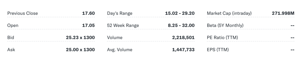 观察DXYZ的股票参数,它的市值现在为2.7亿美金,股价为25美金左右;因此可知DXYZ共发行约1000万股。上市后,DXYZ曾一度跌至发行价8美元附近,随后一路上涨。不过,这段时间的日均交易量不足百万,很可能是上市暴跌后,庄在托盘。