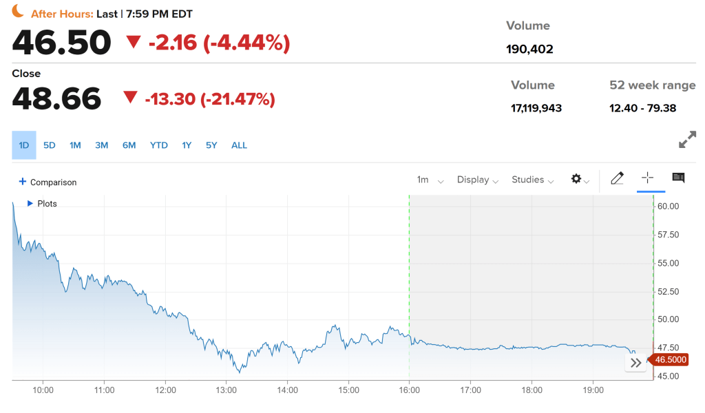 之前分析过,DJT旗下这款社交软件的季度收入不足百万美金,甚至还不如很多人的年薪,而他的市值竟然接近RDDT,这简直是一个笑话。无奈当时IV太高不敢买Put,今天趁着小盘股下跌的行情,DJT被市场无情抛售:日内暴跌21%,盘后继续下跌4%,一天之内总共跌去了1/4。
