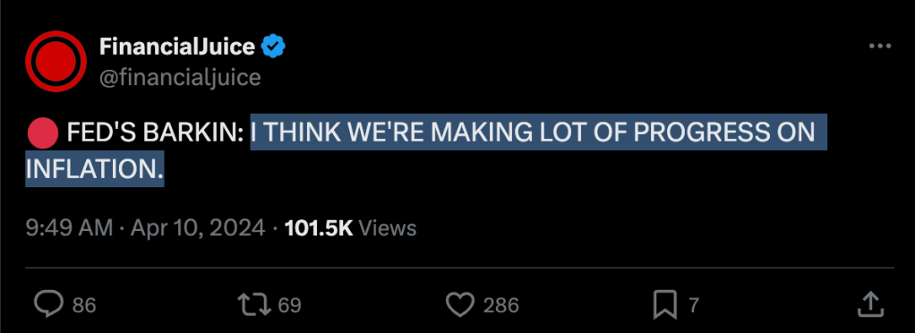 当然,脸皮足够厚的话除外。里士满联邦储备银行CEO Barkin就说,我们已经在抗通胀上取得了长足进步。