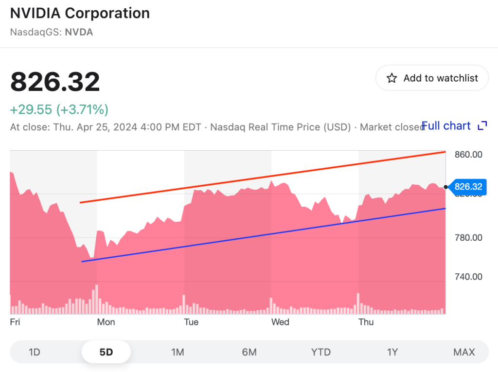 自从上周五暴跌以来,市场周一周二强势反弹;周三因META拖累下跌;周四低开高走接着反弹。以NVDA为例,周五盘后最低760,周二一度上涨至840后原地坠到800,但是今天盘后又涨到了840一股。参考下图,这种上上下下的感觉,让人精神恍惚,不免要问:回调到底结束了吗,我是现在上车还是等Retest前低再接?