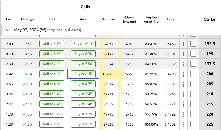 从期权未平仓量(Open Interest)看,本周五(5月3日),特斯拉多空双方应该会在200刀位置上演一次精彩绝杀。