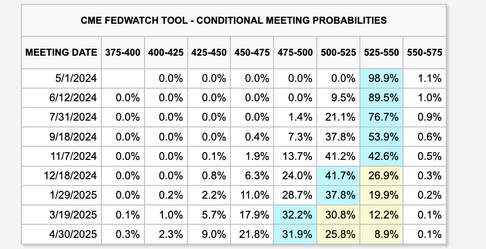 CME网站今天的数据显示,市场预测美联储最快将在2024年的12月进行第一次降息,降息为25个基点。