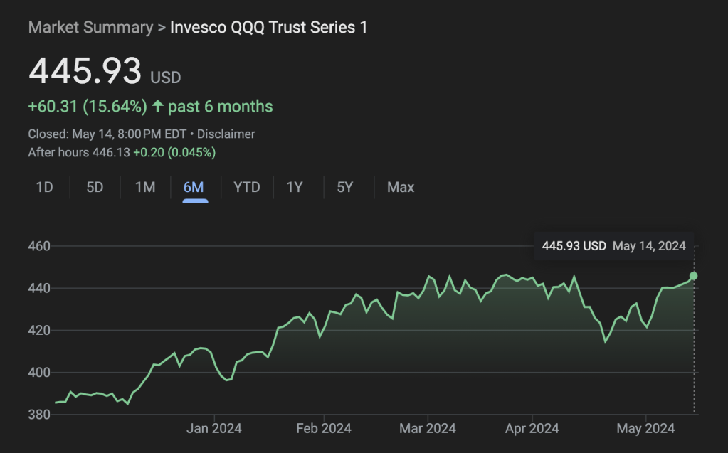 大家好,今天是2024年5月14日星期二。今天大盘主要受PPI数据影响,盘前因为数据过热一度闪崩,但鲍威尔发言后反涨。盘后,QQQ逼近历史新高。