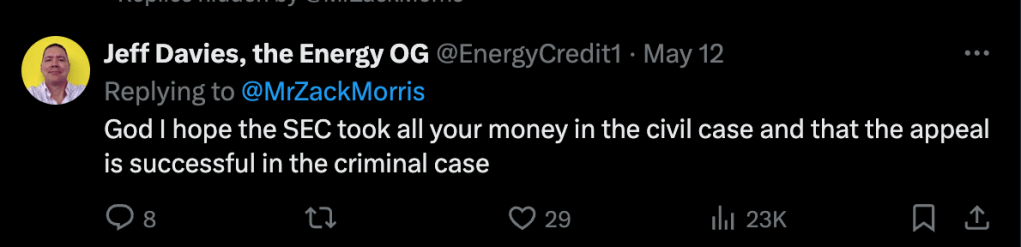 Zack Morris这条推文下已经有人表示要求SEC调查,并且暗示可能有犯罪嫌疑。
