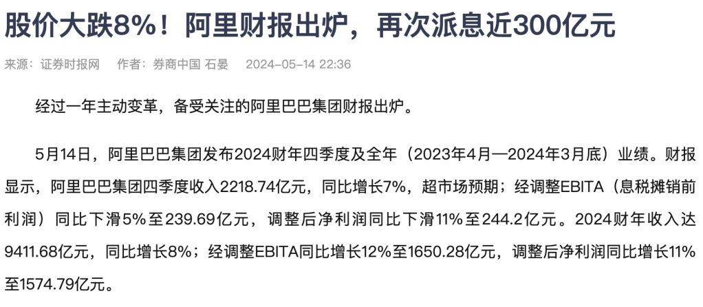 今天盘前,阿里巴巴公布23财年第四季度财报。财报显示公司收入为2218.74亿元,同比增长7%,而经营利润为147.65亿元,同比下降3%。受此消息影响,BABA应声大跌;日内最大跌幅8%,随后有所收窄。我昨天关于“不论财报好坏都会大涨”的牛市预言彻底失效了。虽然其实之前我们也有提到:JD、腾讯和BABA的财报中,危险最大的是BABA:因为它不仅业务庞杂,而且云服务还受美国芯片管制的约束,大涨的可能性为三者最低。
