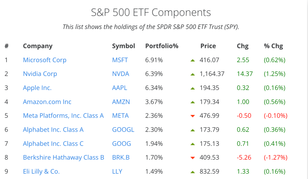 作为参考,SPY500中排名第一的权重股依然是微软,占比6.91%。