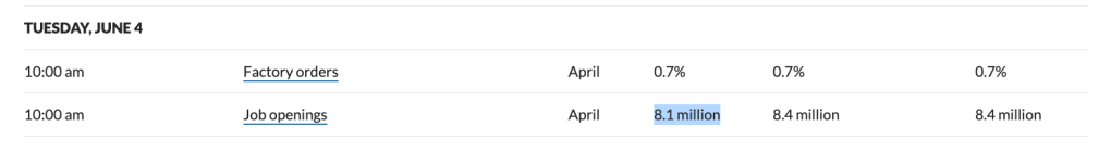 - 周五:美国5月份失业率,就业报告,劳工时薪