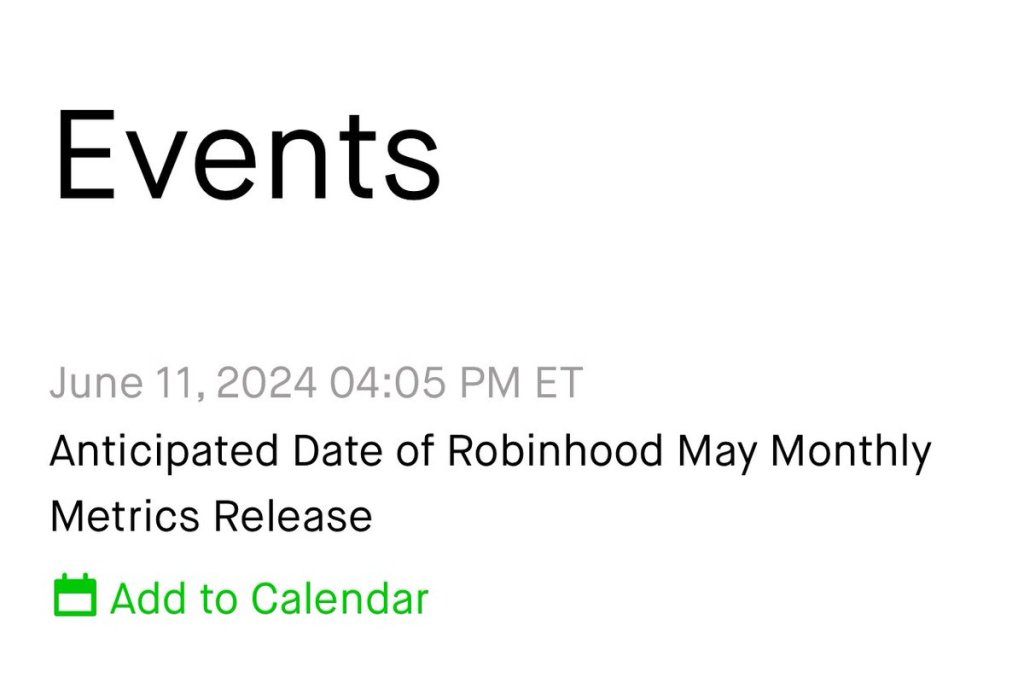 今天,我们在2个月前买入并一直持有的HOOD“无预警”大涨5.59%;其原因实际上是因为该公司将在周二(也就是明天)盘后公布其5月份的用户数据,包括交易额、新增用户数、管理资金总额(AUM)等。考虑到5月份ETH ETF的影响,币圈热度不减又迎来了一波“反弹”;且Gold信用卡、低margin利息、1%补贴等一系列优惠措施推出后,料会有更大规模的养老金等场外资金流入;因此市场对HOOD这一次公告寄以厚望。作为参考,上个月当HOOD推出4月份数据时候,股价一度大涨10%并在2年内首次站上20关口。