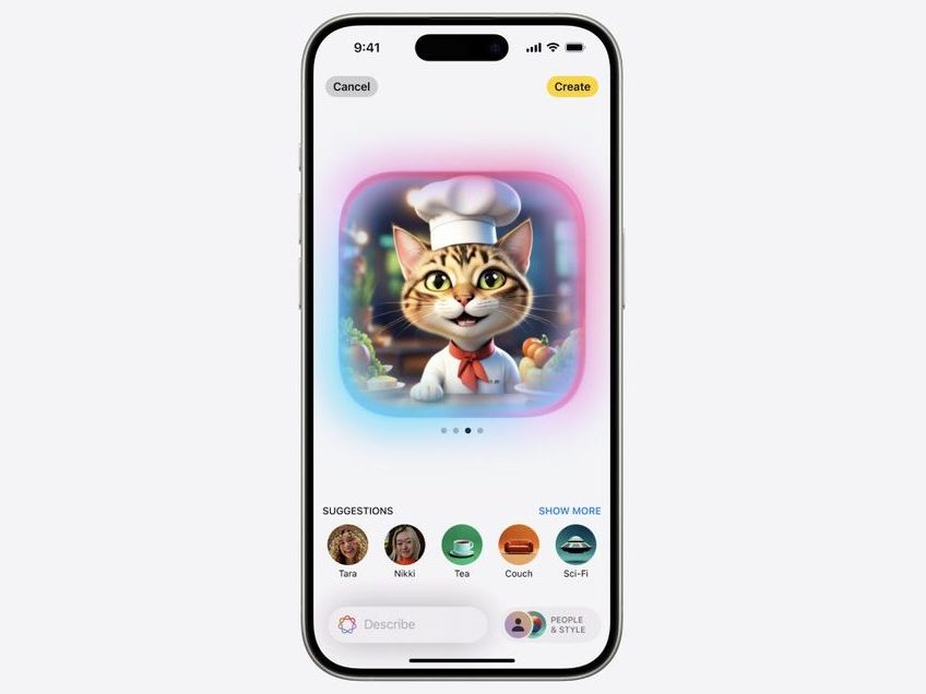 当然是玩笑。虽然AI发布会的绝大部分内容和之前泄露的别无两样,包含文章摘要、邮件重写、全局可进入App内获取数据的Siri AI、图片创作等等,股价也“按照传统”的在发布会后大跌2%。iOS的图标颜色首次染色的更新被人嘲笑“阴间”,甚至那个AI Siri的全屏Halo(光晕)效果,也被指抄袭微软的Copilot。