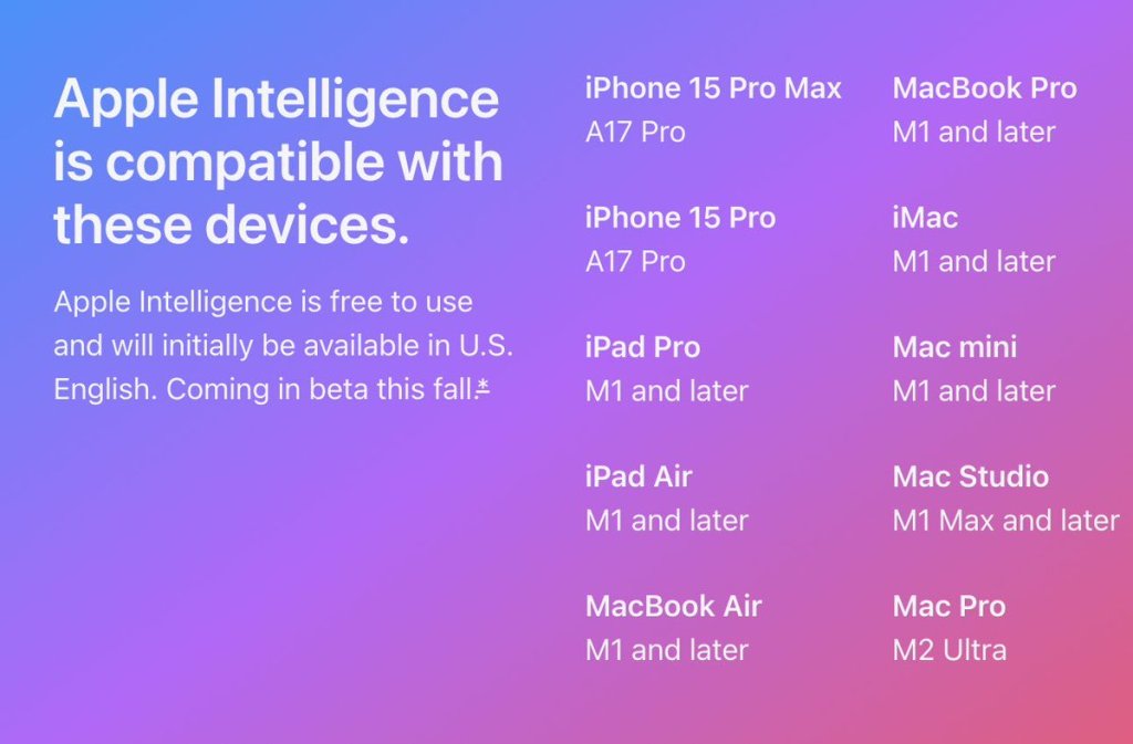 从下图可知,最早支持AI的iPhone版本为iPhone 15 Pro,该机型拥有8GB内存,足以应付SLM的任务需求。A17 Pro处理器内置的NPU算力可能也是原因。