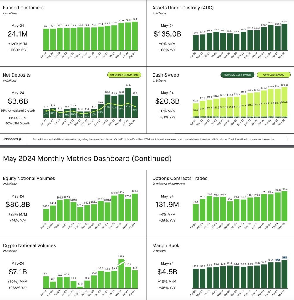 Robinhood公布五月份用户数据,盘后股价走势平稳