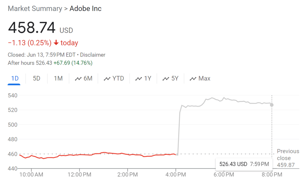 财报发布后,Adobe股价在盘后交易中上涨了超过14%。