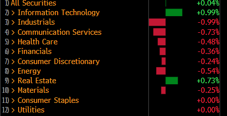 分类来看,SPY信息技术板块今天大涨1%,受劳动力数据恶化而增强的降息预期利好也让房地产板块涨0.73%,但其他所有板块均收跌。