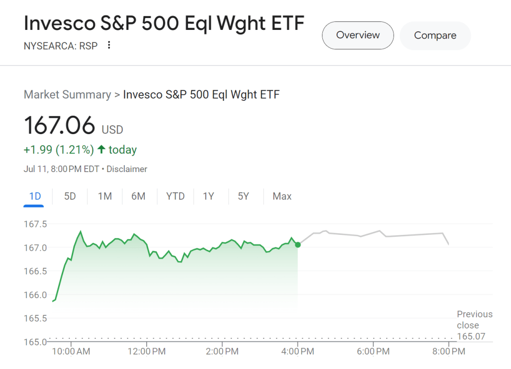 从Equal Weight SPY(RSP)来看,今天日内实际上涨1.2%。这表明,今天标普广度(Breadth)得到改善,上涨的股票比下跌的多。