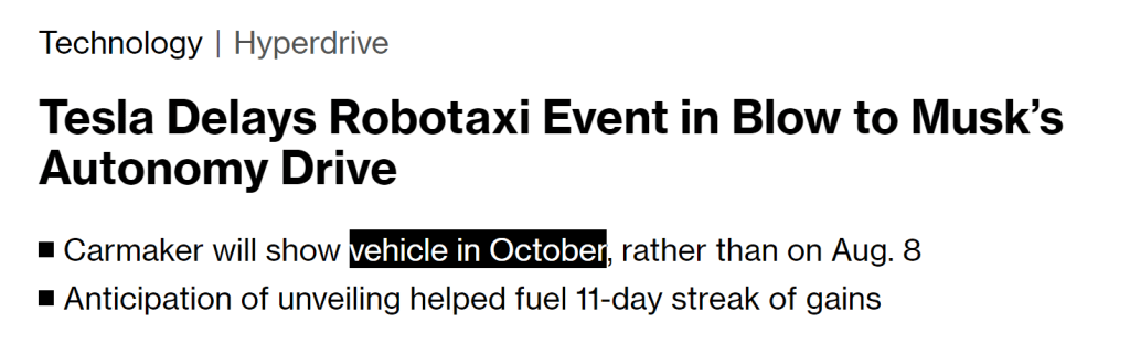 Robotaxi的“推迟”实际上并不构成TSLA基本面利空,这反而有点像4/19 SMCI不公布预售数据配合大盘调整,半导体集体跳水10%。今天的负面消息显然也是配合Mag7调整。短期内,我们会更关注7/23的财报:这才是决定TSLA股价能否守住240的关键。