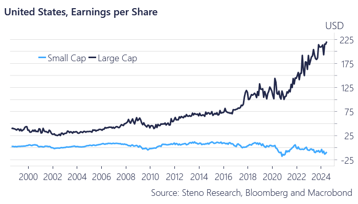 而小盘股无法撑起指数,罗素两千成分股良莠不齐,EPS长期萎靡(如上图);在大选来临之时,机构更关心的是SPY的位置,而非IWM。因此IWM的反弹可能是暂时的,但对于大科技来说,这种因“好消息”产生的回调,反而是我们加仓的机会。