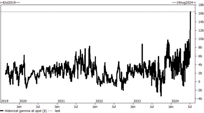 而之前我们提到,保护SPY的Gamma仓位,其实一直位于高位。本周三依然有110亿之多,代表SPY本月最多出现6%的波动。