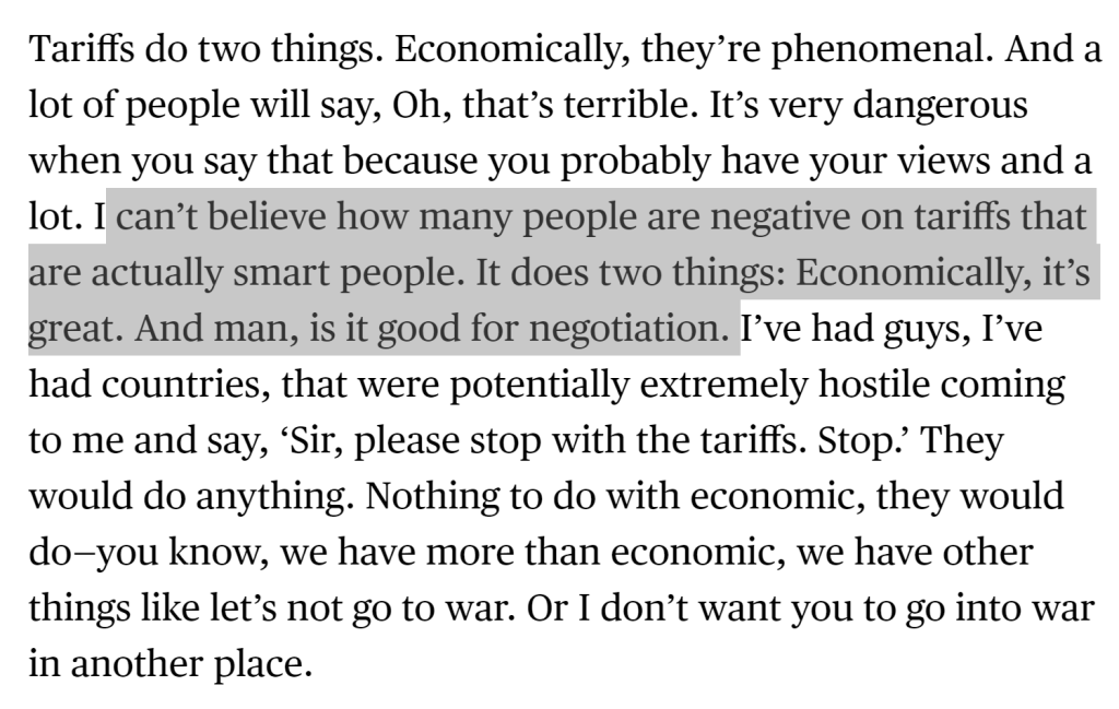 - 关税不仅利于经济,更利于谈判:特朗普可以利用关税对其他国家提出更多要求。