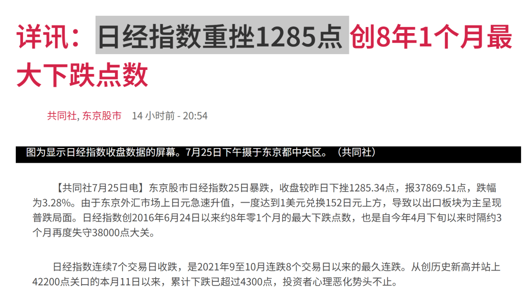 - 和“衰退”相比,我个人认为,日元回流可能才是美股7月底回调的“基本面”方面的原因。