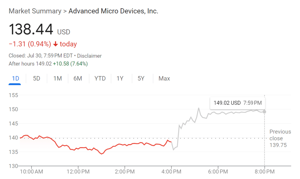 截至本文写作时,AMD在24小时交易所已涨超10%,成交在150美金上方。
