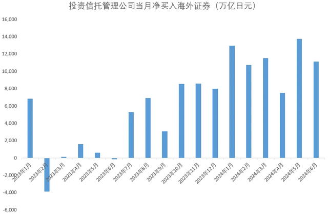 - 年初,日本政府推出新的NISA制度,免除股市投资收益所得税(上限250万日元每年)。此举掀起了日本个人、家庭和投资机构炒股的热潮。日本财务省公布的数据显示,今年前6个月,日本国内投资信托管理公司等的海外投资净买入已经超过6.7万亿日元。