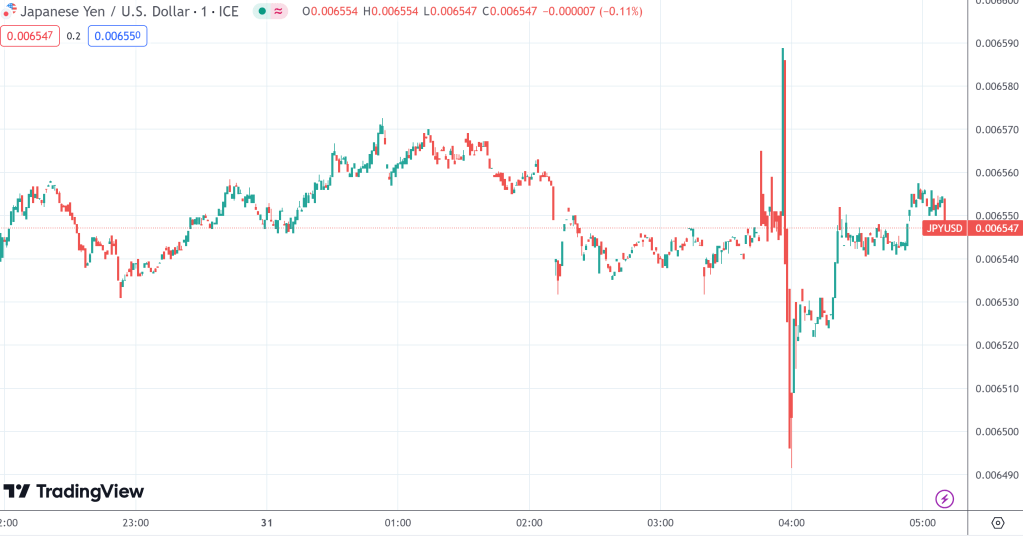 - 7月30日美国周二,市场不知道从哪里流传出一份日本银行将加息25个基点的传言。一时间外汇市场惊恐,早上开盘后日元继续飙升1%(注意到上图的蓝框部分)。美股方面,则相应上演了我们上午看到的大崩盘。