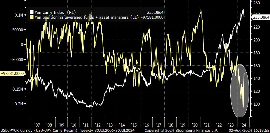 短期内,对美股产生重大影响的资产,当然就是之前已经谈过的:日元carry trade,以及他们在今天夜盘所引发的:全球风险资产清算。