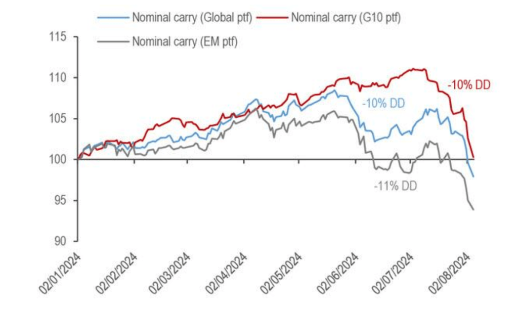 此外,根据摩根大通的最新报道,本次暴跌的“始作俑者”——日元套利交易已经解除了约75%。料想套利交易者对美股的影响将会下降。这可能会给本周最后一个交易日,甚至月底NVDA财报之前美股的稳定恢复提供一定基础。