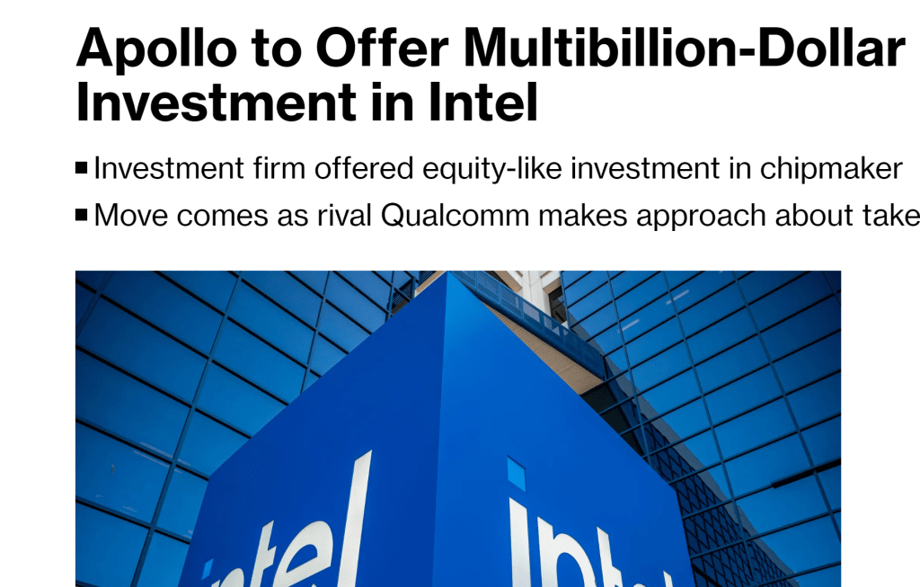 - 估值如此便宜的巨头自然成为多家觊觎的目标。除了QCOM外,周日市场还放出消息,称阿波罗私募基金计划对INTC投资50亿美元,以换取公司股份。这两家公司之前就有一笔高达110亿美金的合作。上周,市场还传出INTC和AMZN(AWS)在AI芯片制造方面合作的消息。