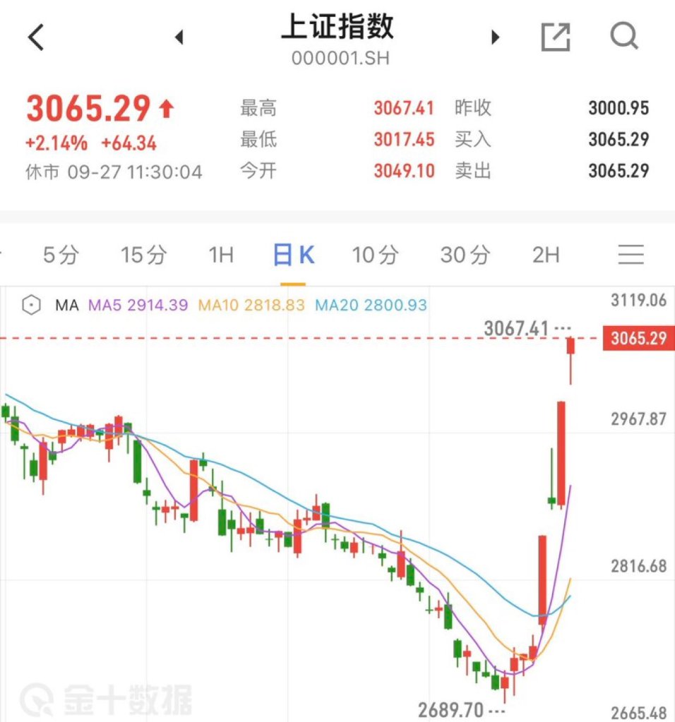 从2700点的绝望到“牛回3000”,大A只用了7天,周涨幅创下15年来新高。K线图上就没见过这样的走势,市场FOMO了。西方人也第一次见识到中国制度下无预警集体180度转向的威力。