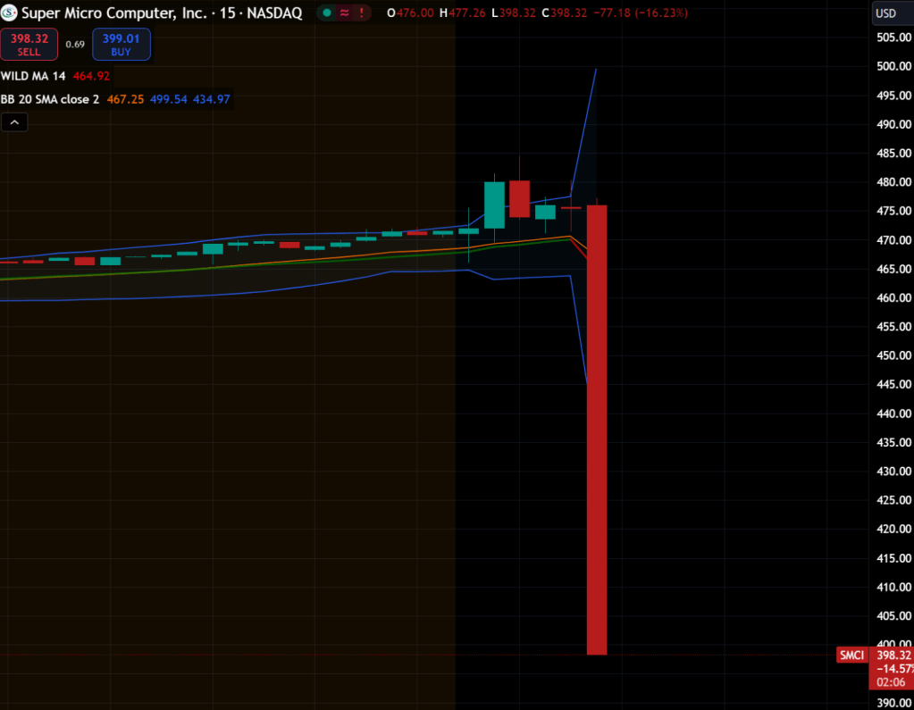 原本认为SMCI会在10K发布、最终数据造假水落石出的那一瞬间崩盘。没想到,报应提前就来了。虽然我没有在这一波-15%的巨震中亏钱,但我日内做了几笔反弹交易。下面就介绍一下我今天因为SMCI跳水,急于抄底而“被割韭菜”的全过程。