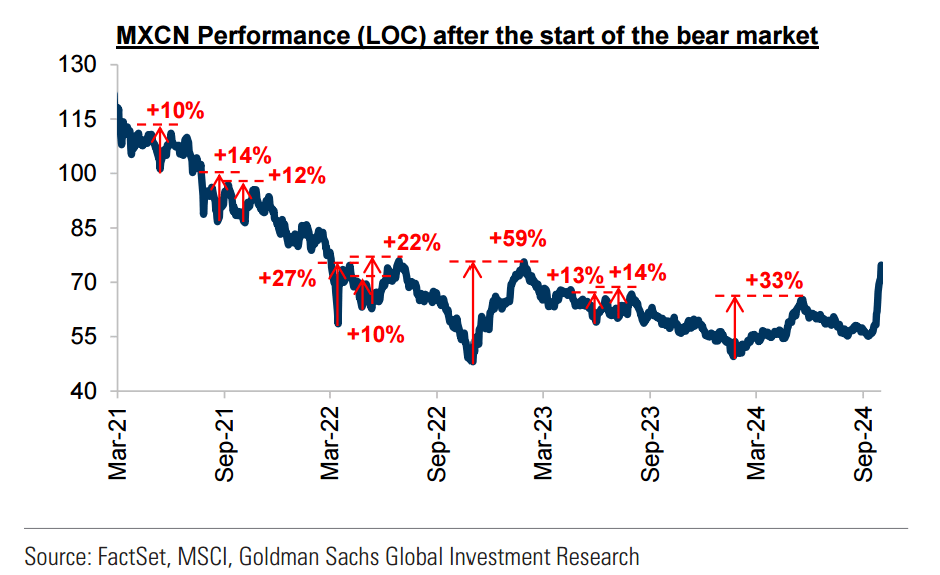 从2022年底算起,外资在中国市场遭遇过三次信心反转,但均告失败。最大的一次反转是2022年底的疫情放开,当时MXCN指数大涨超59%;其余两次分别是2023年中和24年上旬。这可以解释为什么他们对此次转向效果的态度尤为保守。