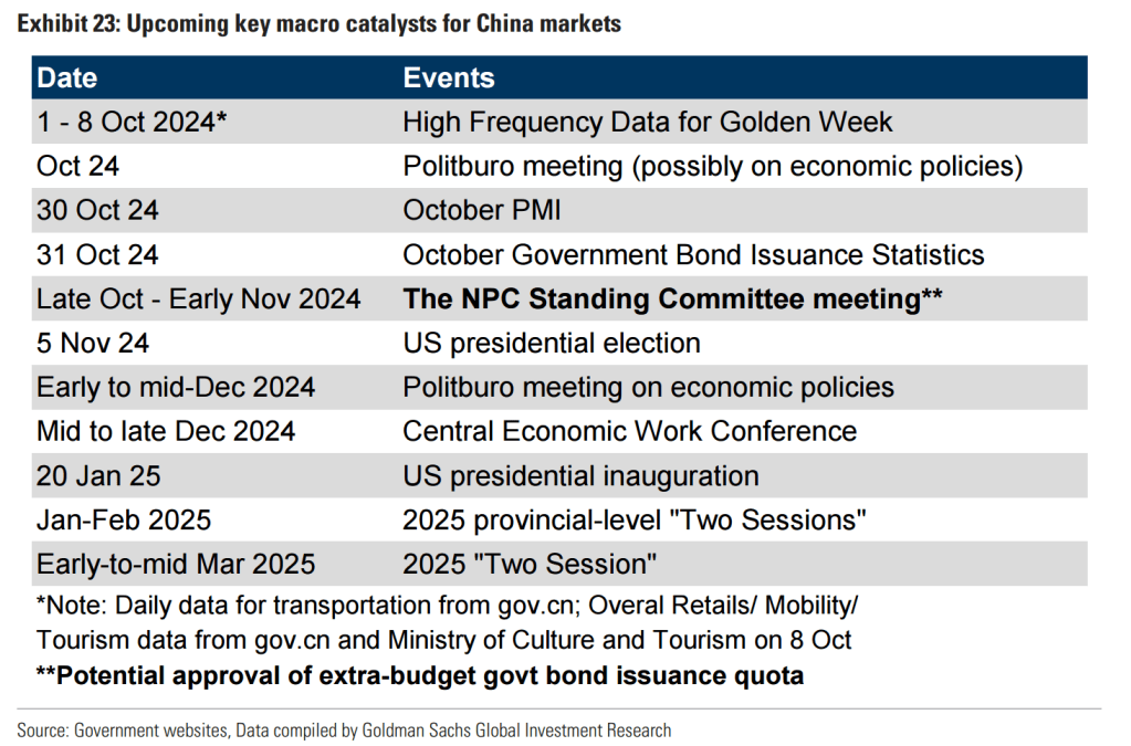 我们总结高盛所列举未来影响A股走势的宏观事件如下: