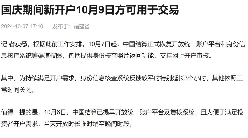 大家好,今天是2024年10月6日星期日。承蒙大家厚爱,自9/24货币刺激、9/26财政刺激发布以来,我们“日报”收获了大量读者,也有很多新的会员朋友们入群,参与了本次中国股市令人瞩目的绝地反弹。我诚惶诚恐。这里需首先要提示大家:股市有风险,投资需谨慎。没有人可以预测第二天的走势,如果已经有足够的利润,可以适当考虑止盈。国庆假期这七天,港股继续猛攻,许多在群内讨论并做多相关板块(券商、ASHR、FXI、YINN,乃至中概大科技)的朋友们的确狠赚了一笔,这里先恭喜他们。