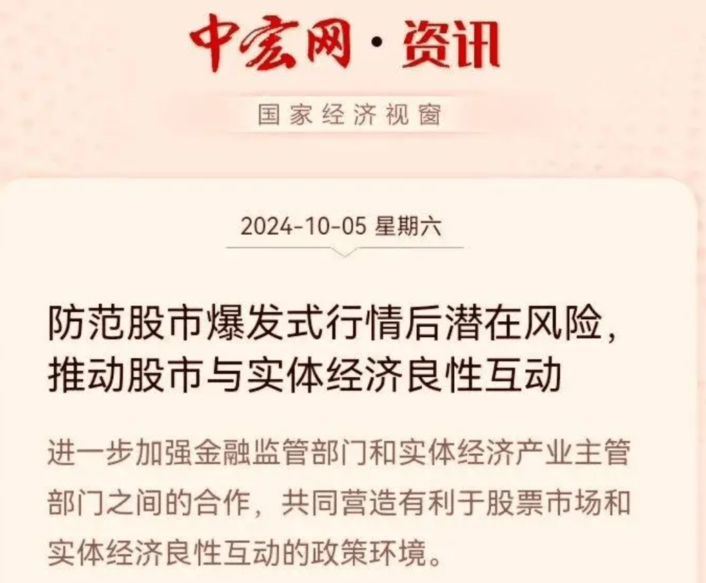 下周二上午10点,发改委将联合正负主任将会举办新闻发布会,介绍“系统落实一揽子增量政策,扎实推动经济向上结构向优、发展态势持续向好”的有关情况。A股节后也将于当天上午9点半首次开盘,这次发布会的寓意不可谓不明显。