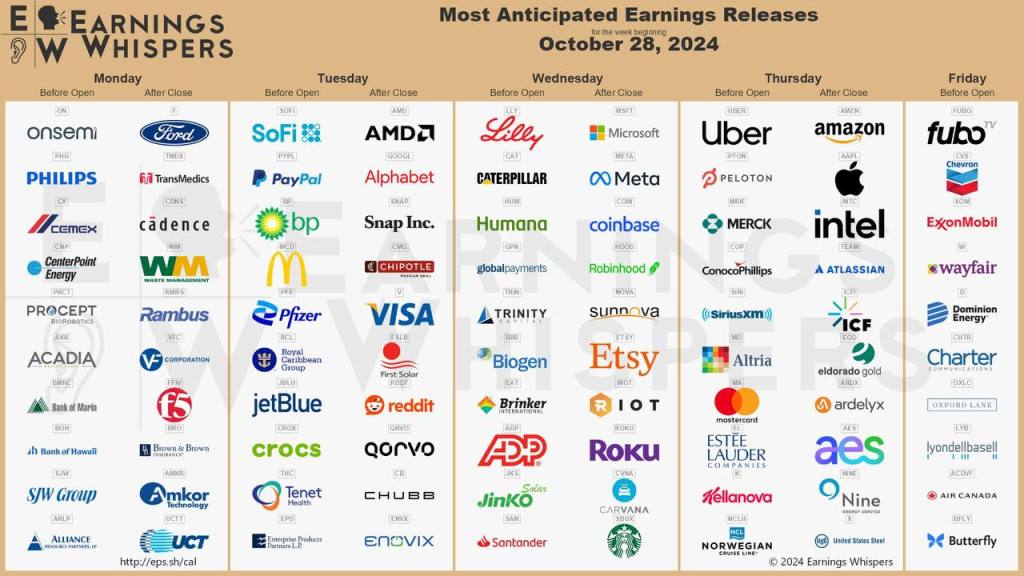 下周,市场将迎来秋季最为热闹的财报周,具体来说: